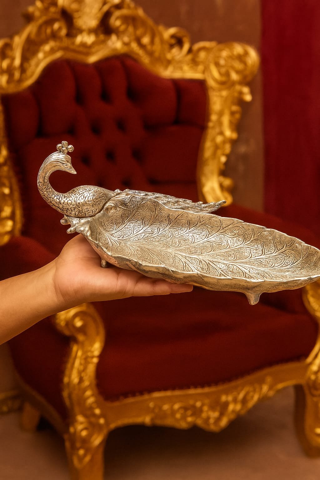 Be the first to review “Antique Silver Peacock Decorative Tray – Elegant Serving Plate for Dry Fruits, Candy & Festive Gifting | Home & Table Decor”