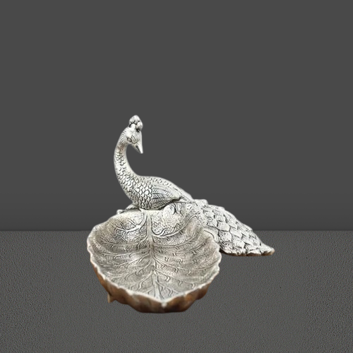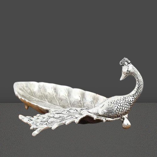 Antique Silver Peacock Decorative Tray – Elegant Serving Plate for Dry Fruits, Candy & Festive Gifting | Home & Table Decor