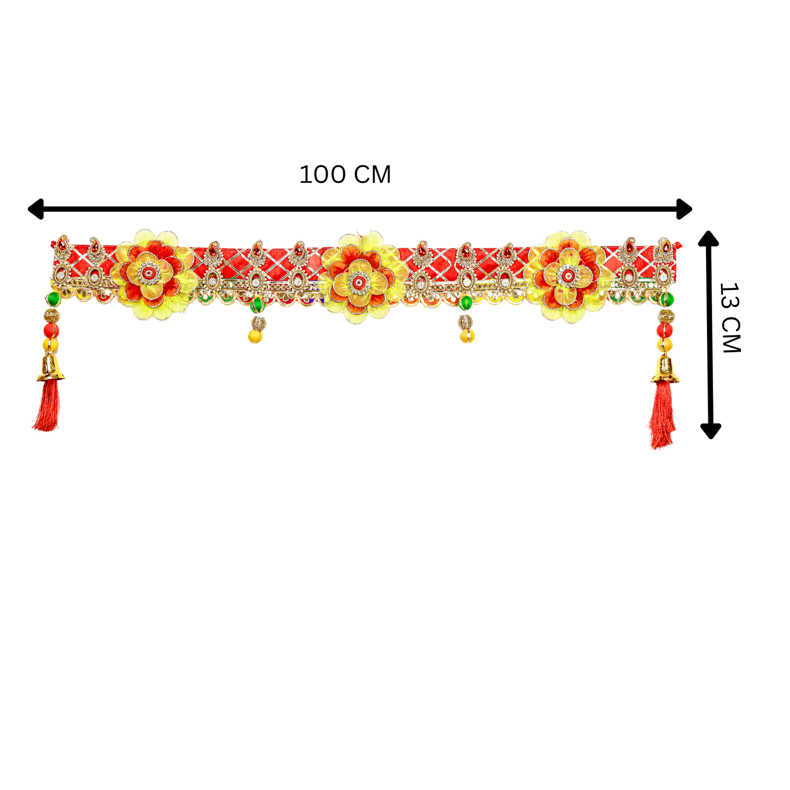 The Combination Red n Yellow Color Toran is the perfect decorative piece to enhance your home’s ambiance. Designed with vibrant shades of red and yellow, this toran symbolizes prosperity and joy, perfectly suited for festive occasions or everyday décor. Its intricate craftsmanship makes it a timeless accessory, creating a welcoming atmosphere wherever it’s placed.