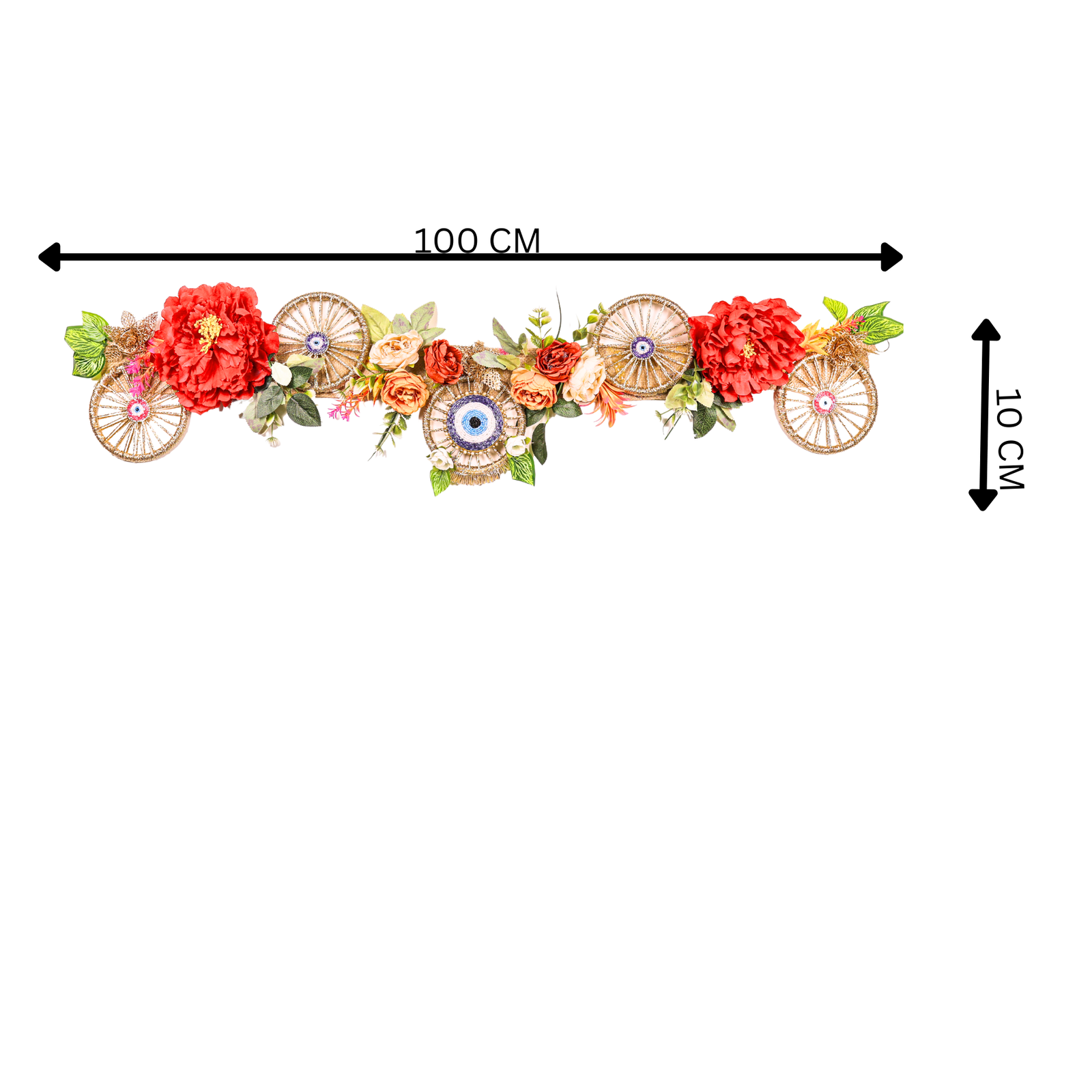 Made with meticulous attention to detail, our Evil Eye Ring Tri-Color Diwali Home Decor Toran features high-quality materials and expert craftsmanship. The vibrant colors are carefully chosen to complement any home decor style, while the sturdy construction ensures durability. Easy to hang and maintain, this toran is a hassle-free way to elevate your Diwali decorations. It’s not just a decoration; it’s a handcrafted piece of art that adds a touch of elegance and cultural richness to your home. Bring home this Toran and transform your space into a haven of positivity and festive joy this Diwali. This beautiful Diwali decor will be the highlight of your home.
