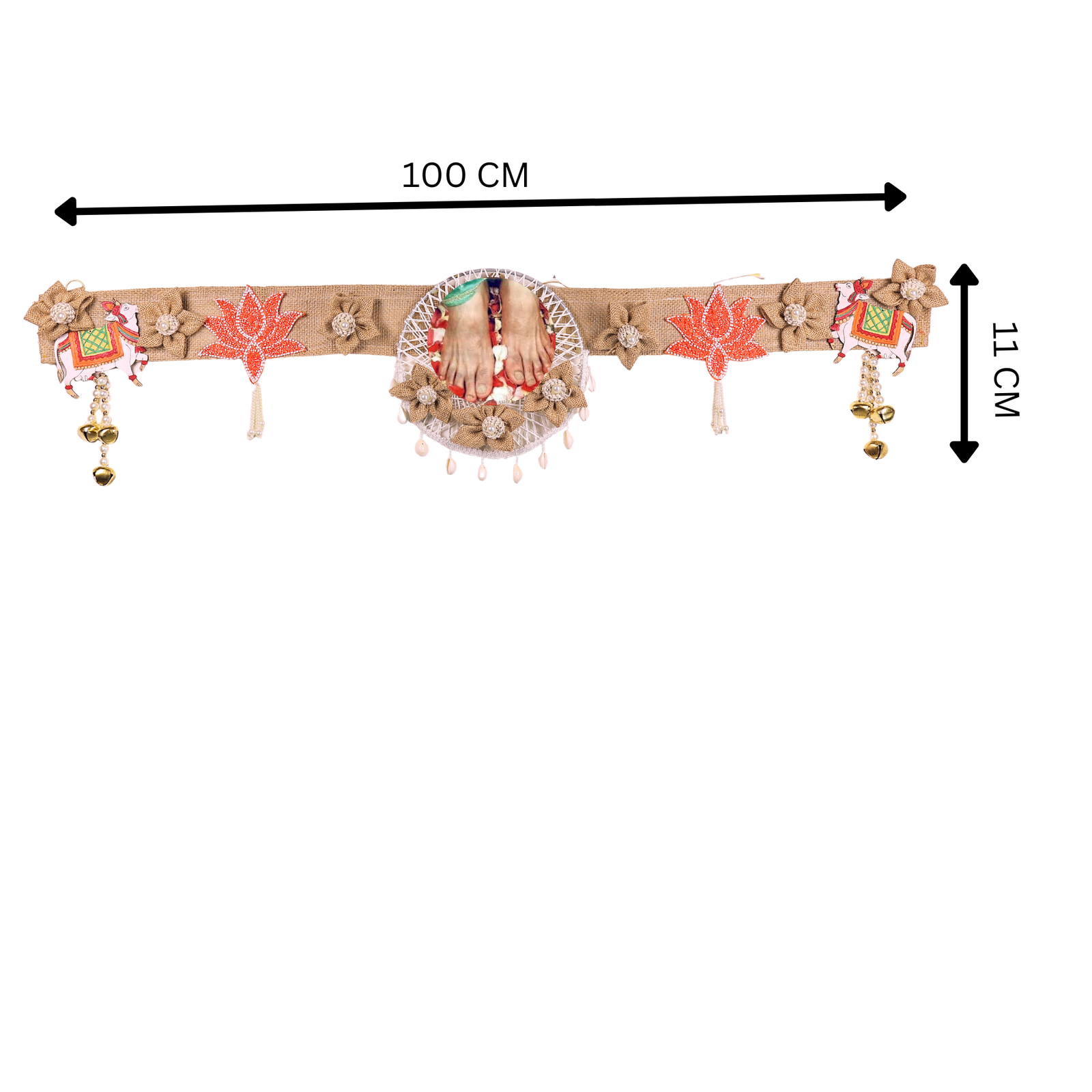 The Guru Ji Charan Home Decor Lotus Toran also serves as a thoughtful and meaningful gift for your loved ones on special occasions. Be it weddings, festivals, or housewarmings, this elegant decoration makes for an endearing gesture that radiates positivity and a sense of well-being. Share the gift of artistry, spirituality, and timeless beauty with this one-of-a-kind toran that resonates deeply with Indian heritage and culture.