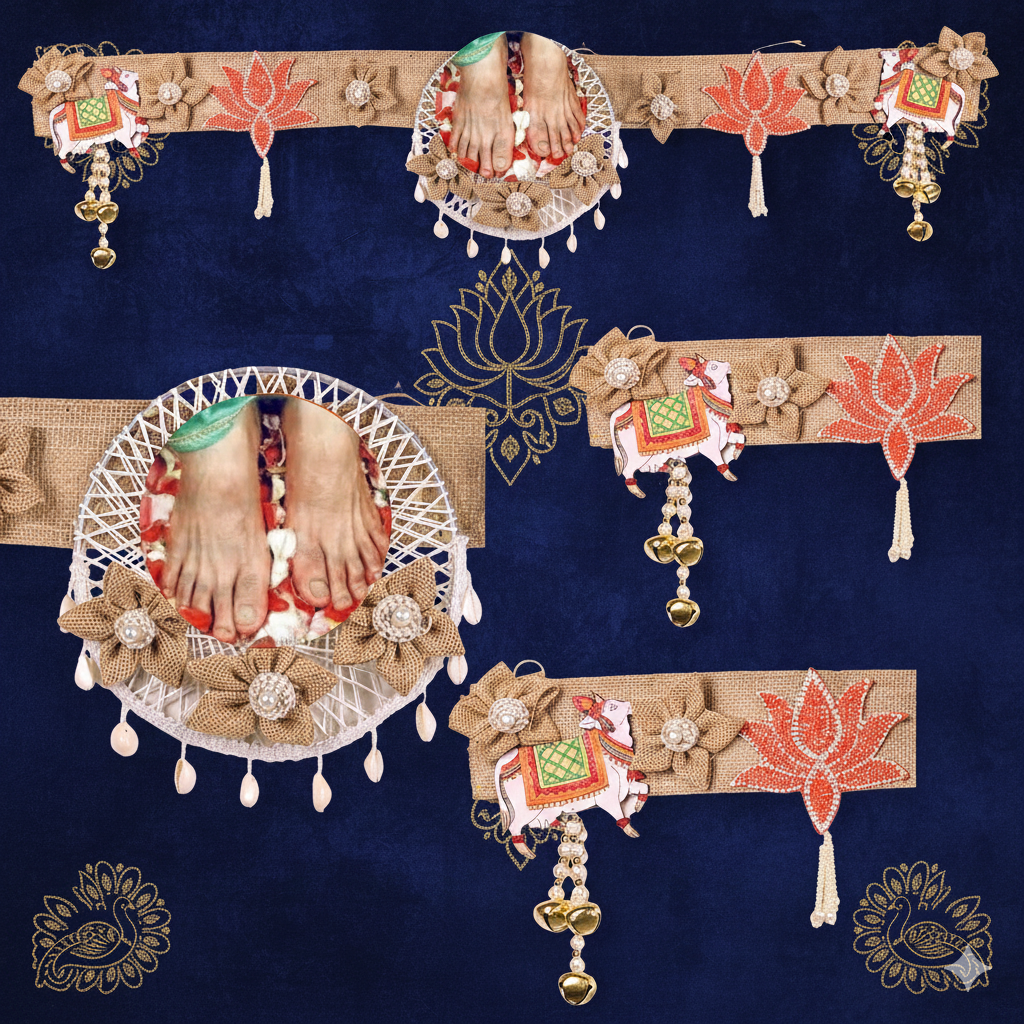 Welcome peace and positivity into your home with the exquisitely designed Guru Ji Charan Home Decor Lotus Toran. This symbolic decoration effortlessly combines traditional charm with modern craftsmanship, making it ideal for adorning your home entrances, temples, or festive celebrations. Carefully crafted to evoke a sense of spiritual connection, this toran is an impeccable addition to homes seeking an aura of tranquility and harmony.