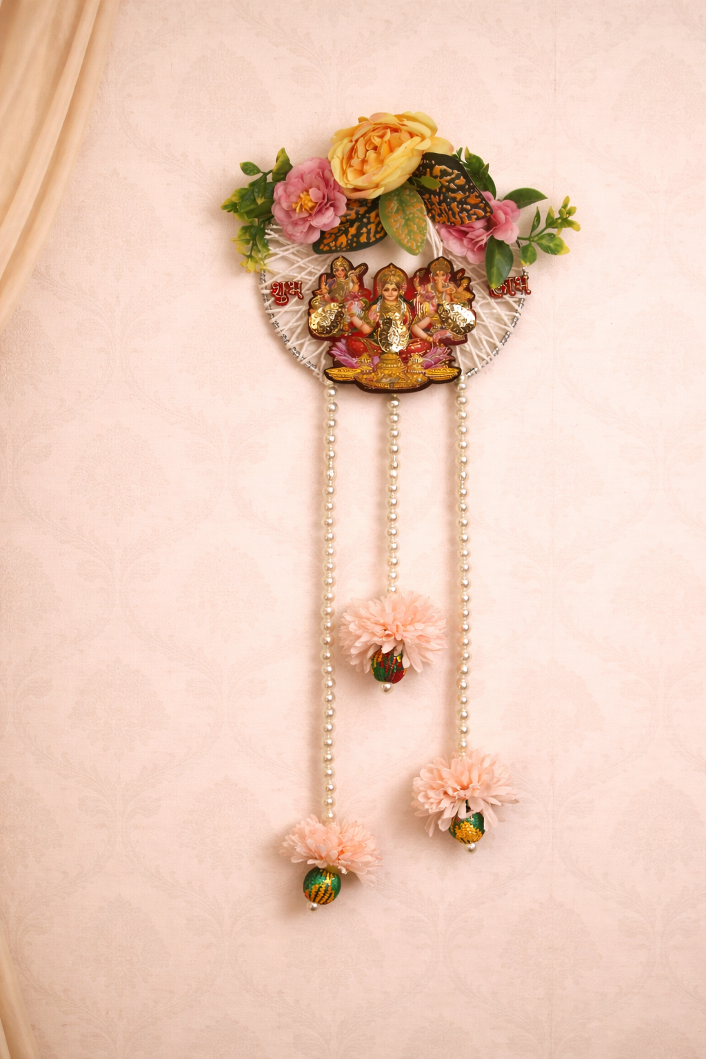 Welcome the charm of tradition and artistry into your living space with the Shubh Lakshmi Floral Wall Hanging – a stunning addition to your festive home décor. Handcrafted with precision and care, this wall hanging embodies the essence of cultural symbolism, blending beautifully with modern aesthetics. Whether you’re celebrating Diwali, Navratri, or simply wish to elevate the ambience of your home, this exquisite decoration is a timeless choice for radiating positivity and grace.